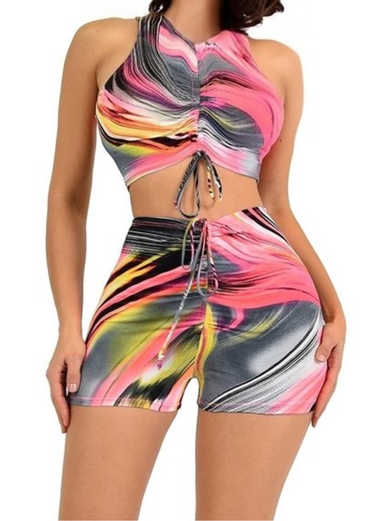 MULTICOLOR BRUSHED PRINT 2 PIECE SHORT SET