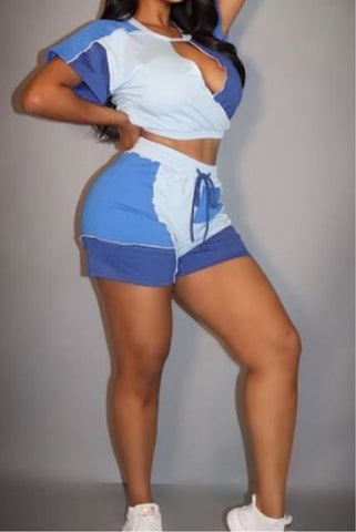 SHORTS SET WITH A CROP TOP WITH MULTI COLOR BLOCKS, CONTRAST STITCHING DETAILSSELF: 65% POLYESTER,30% COTTON, 5% SPANDEXCONTRAST:65% POLYESTER,30% COTTON, 5% SPANDEX